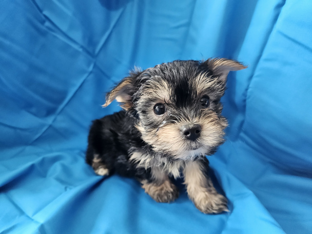 Morkies are a designer breed. They are a mix of Yorkies and Maltese. Although no two babies are the same, Morkies can take on two diffrent appearences. They can resemble a Yorkie in color with blond instead of tan around the face and legs. They can also be golden in color but look more like the Maltese. They are very loving and have a great personality.